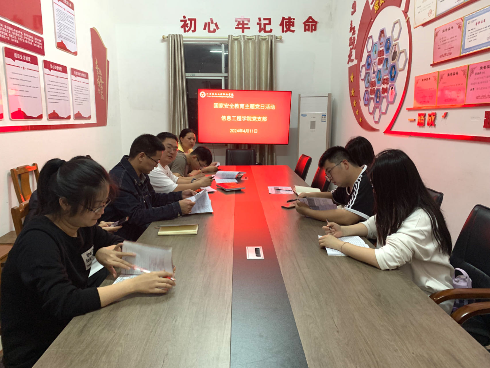 为深入学习领会习近平总书记关于意识形态工作的重要论述,增强总体国家安全观,筑牢保密思想防线,4月11日,信息工程学院全体党员开展国家安全教育主题党日活动。