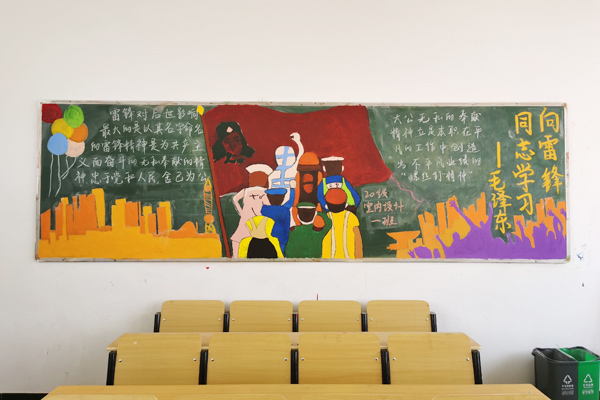 活动期间各班积极参与,同学们纷纷把对雷锋同志的尊敬和怀念之情深深融入到了板报创作之中。每一个班级的黑板报都独具特色,既弘扬了雷锋精神,又赋予其时代精神。经过激烈角逐,20计网班的黑板报紧扣主题,设计新颖,整体色彩感强烈,最终拔得头筹。