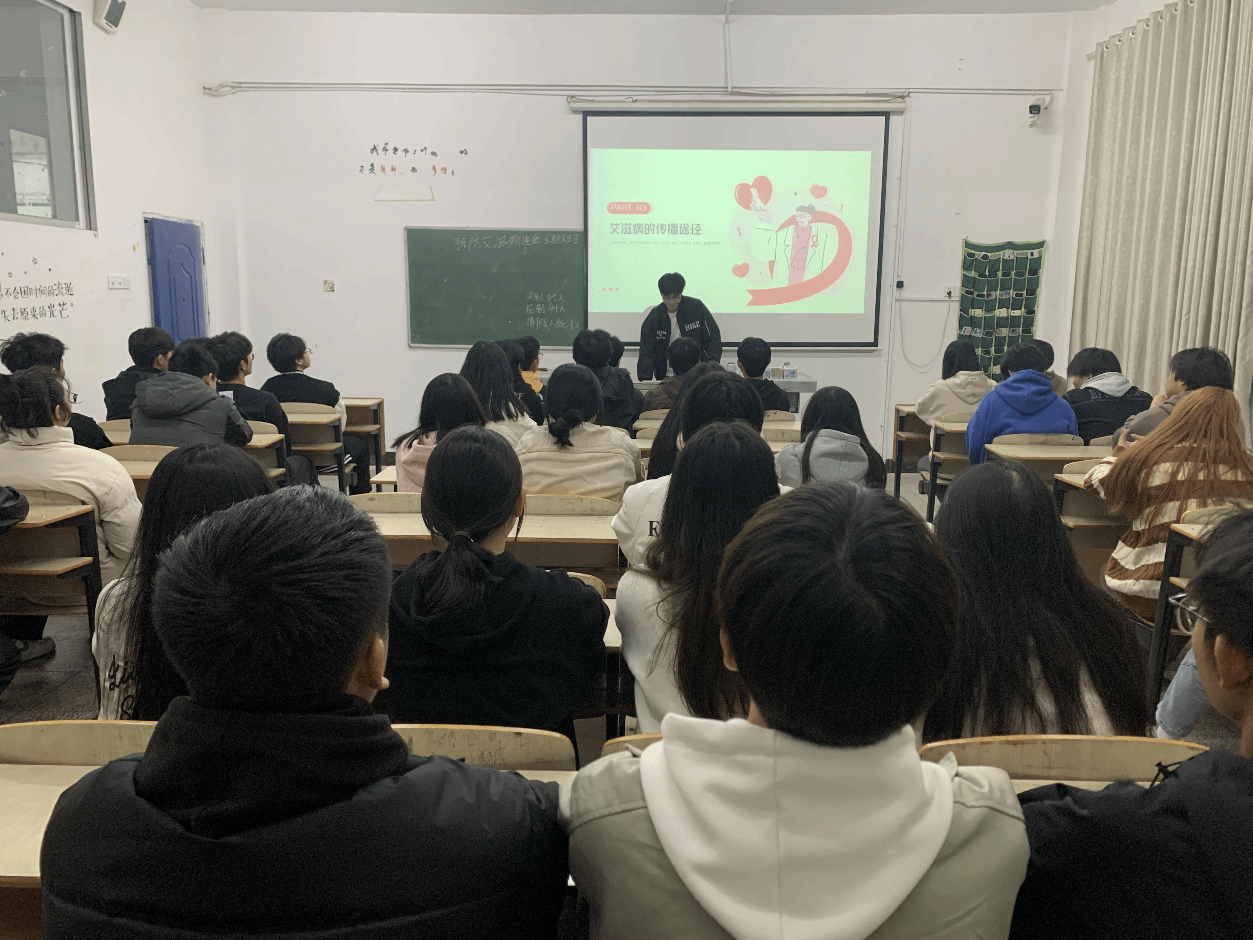 为提高学生对艾滋病的认知和了解,传授预防艾滋病的知识和技能,帮助他们树立正确的健康观念、培养健康的行为习惯,从而减少感染艾滋病的风险。信息工程学院于2023年11月26日晚8点在教学楼开展“预防艾滋病健康教育”主题班会。